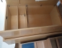 | Dlouhá světlá šatní skříň, rozložitelná pro přepravu ale je to velmi stabilní a pevné provedení (desky mají trochu větší váhu), rozdělena je do 3 částí a každá tato část má uvnitř 2x polici a 1x šatní tyč, desky mají otvory pro různé nastavení polic nebo případně je možnost i přidat do skříně další police, skříň je celkově velmi zachovalá, má pouze pár menších odřenin např. vedle uzamykání klíčů viz. foto a pak u prvních dveří nefunguje zámek a dveře se přichytávají suchým zipem viz. foto (možná oprava zámku) |